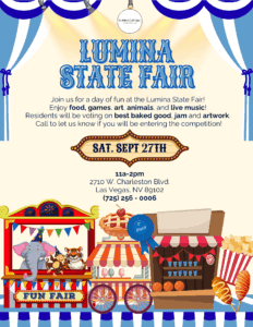 I am so grateful for Life Enrichment Director, Alyce Kincanon, for asking me to participate in the Lumina State Fair Las Vegas event.